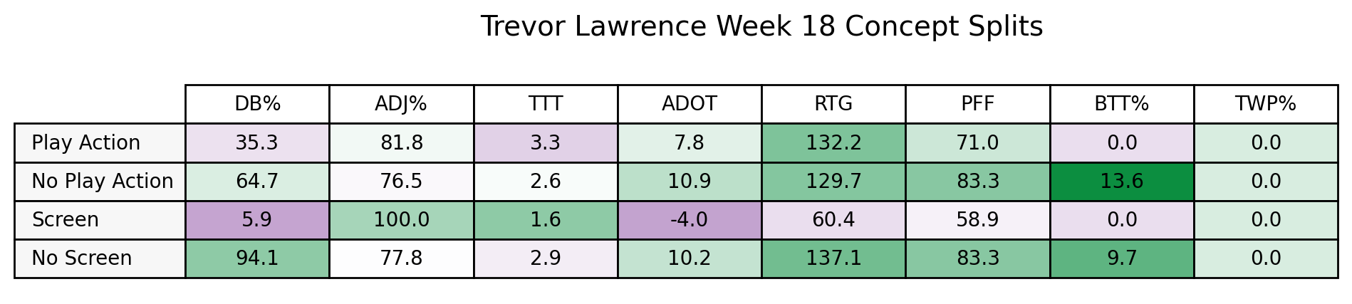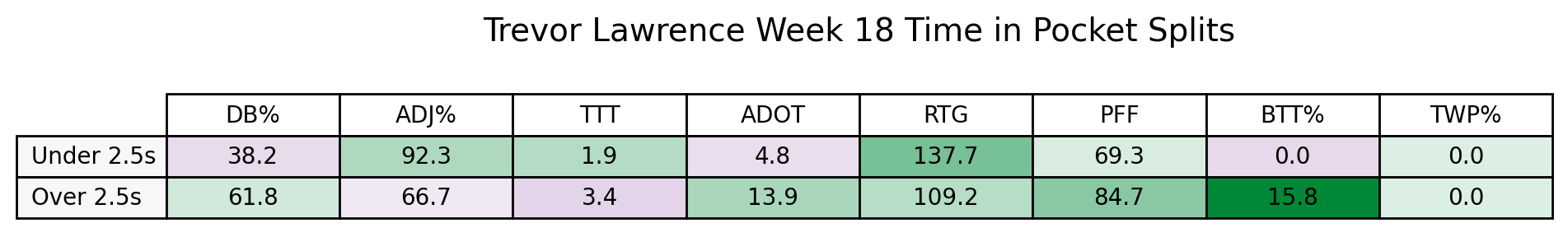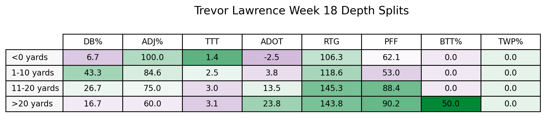 Let's take a look at Lawrence's Week 18 performance through the lens of some passing splits.